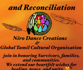 National Day for Truth and Reconciliation Niro Dance Creations & Global Tamil Cultural Organization Join in honoring Survivors, families, and communities. We extend our heartfelt wishes for healing, peace and unity. Date : September 30th,…